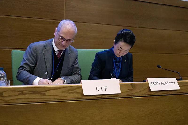 3月18日,中国—意大利经贸论坛暨第三届链博会推介会在米兰举行。论坛期间,中国贸促会研究院院长赵萍与意大利中国理事基金会秘书长马可·贝廷代表双方签署《中国贸促会研究院与意大利中国理事基金会研究中心和学院合作备忘录》。备忘录签署后,中国贸促会研究院与意大利中国理事基金会研究中心和学院将在合作研究、联合培训和共办学术活动等方面加强合作。