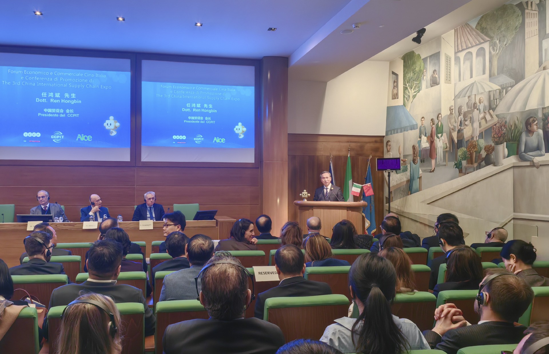 3月18日,中国-意大利经贸论坛暨第三届链博会推介会在米兰举行。中国贸促会会长任鸿斌、意大利中国理事基金会会长博塞利、意大利外贸协会秘书长多尼诺蒂、中国驻米兰总领事刘侃等出席并致辞。本次活动由中国贸促会与意大利中国理事基金会共同主办,意大利外贸协会协办。中意两国贸易投资促进机构、商协会和企业代表200余人参加。活动现场,中意两国有关机构和企业签署多份合作文件。