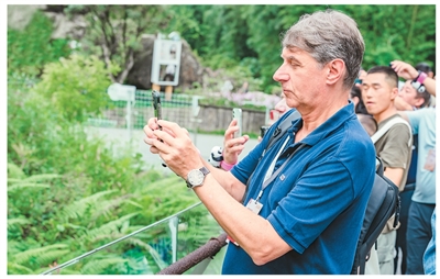“我与熊猫面对面”活动上,中外嘉宾拍摄可爱的大熊猫 图源:央视网