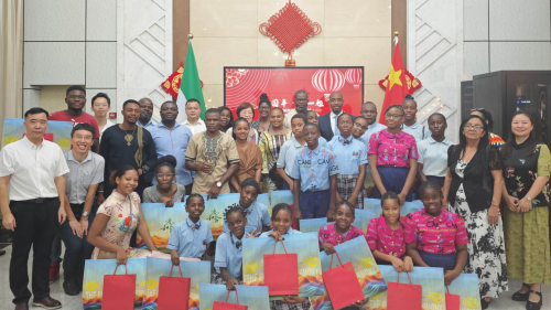 2025年2月11日,驻赤道几内亚使馆举办“中国年·在一起”春节文化体验活动。驻赤道几内亚大使王文刚和夫人伍冬梅、赤几儿童救助委员会多语种学校小学部校长库尔韦洛、初中部校长阿巴加、西蒙保利娜友谊学校校长埃拉,以及各校师生代表等共40余人出席。活动以亲身讲解与播放宣传片相结合的形式,向大家介绍春节的起源、习俗与文化内涵,并精心设置了互动体验区。